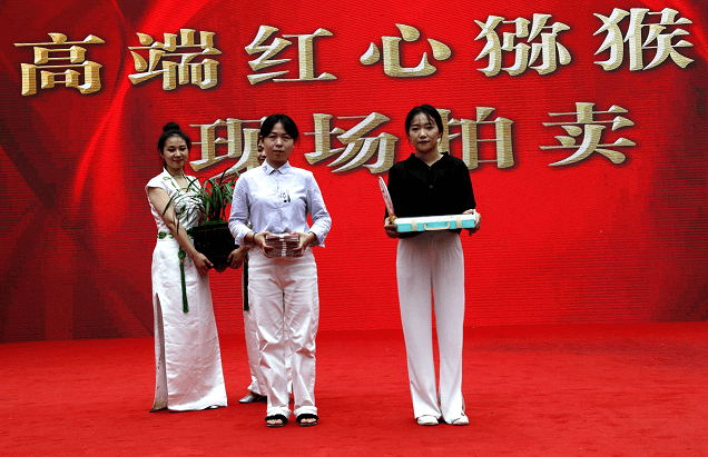 拍卖现场,16个装有机红心猕猴桃被买家8万元拍得